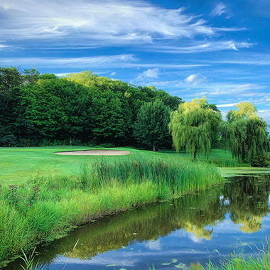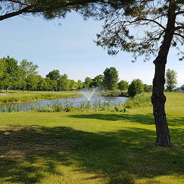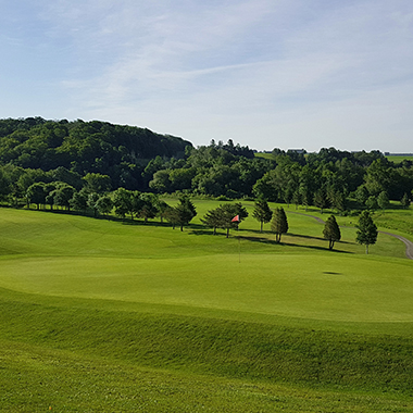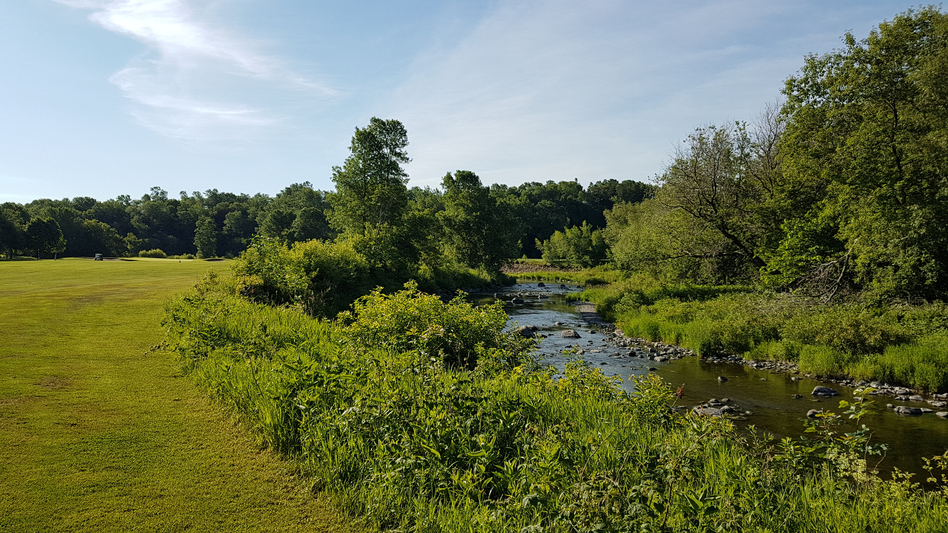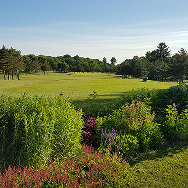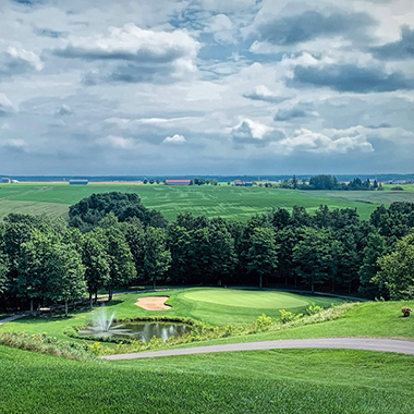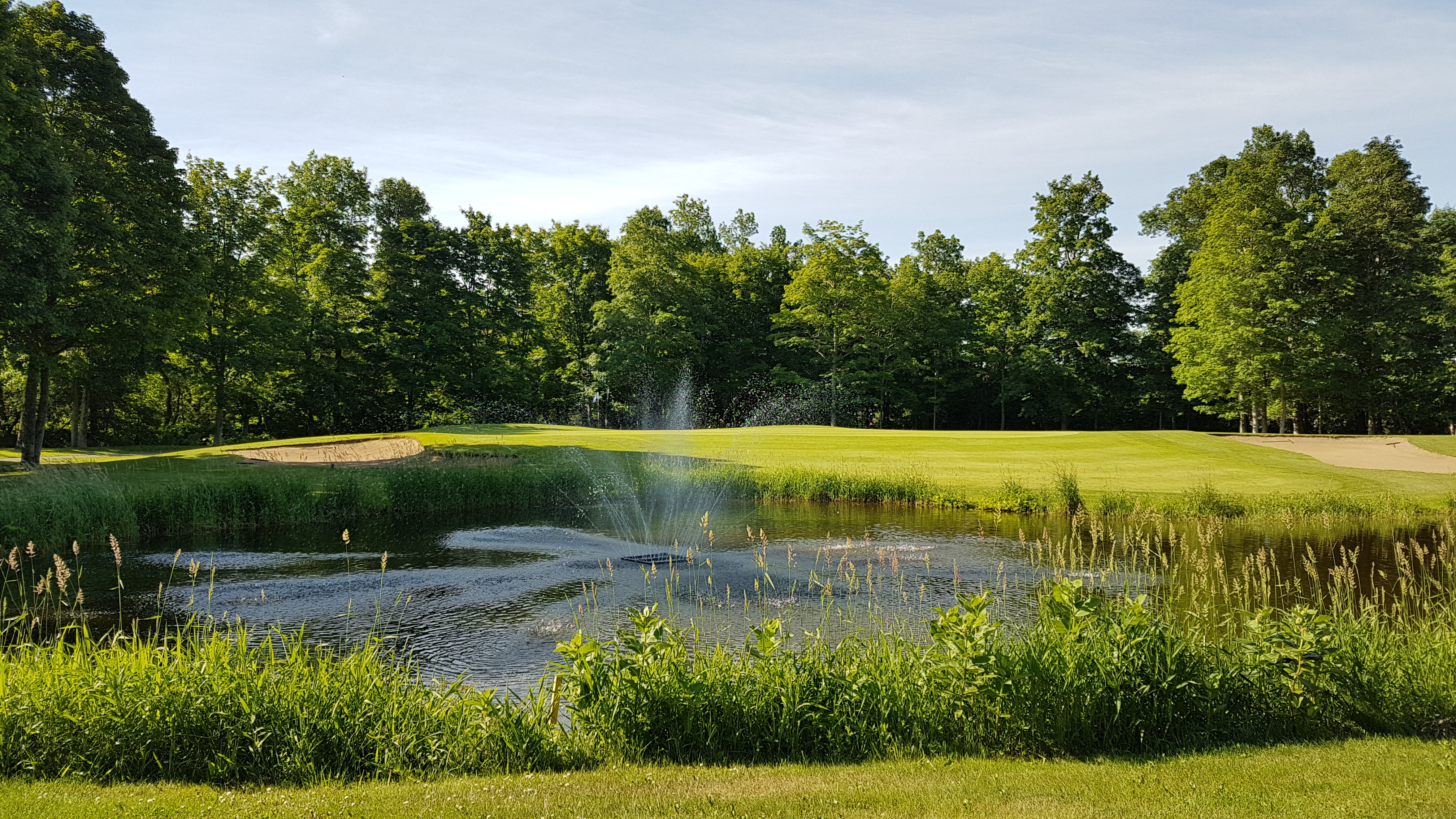Cette normale 72 de 6462 verges a été dessiné par l'architecte Phil Watson. Il s'étend sur deux paliers et offre un panorama pittoresque. Ceinturés par la rivière Boyer, le design exploite au maximum la topographie environnante tout en préservant les précieux espaces boisés. Le terrain offre un défi de taille avec ses nombreux obstacles d'eau et ses trappes de sable.