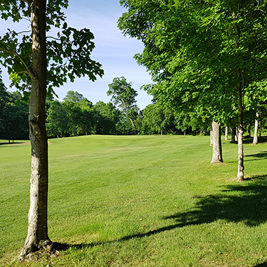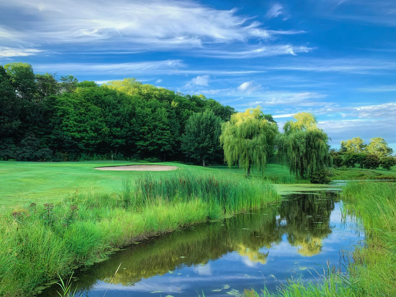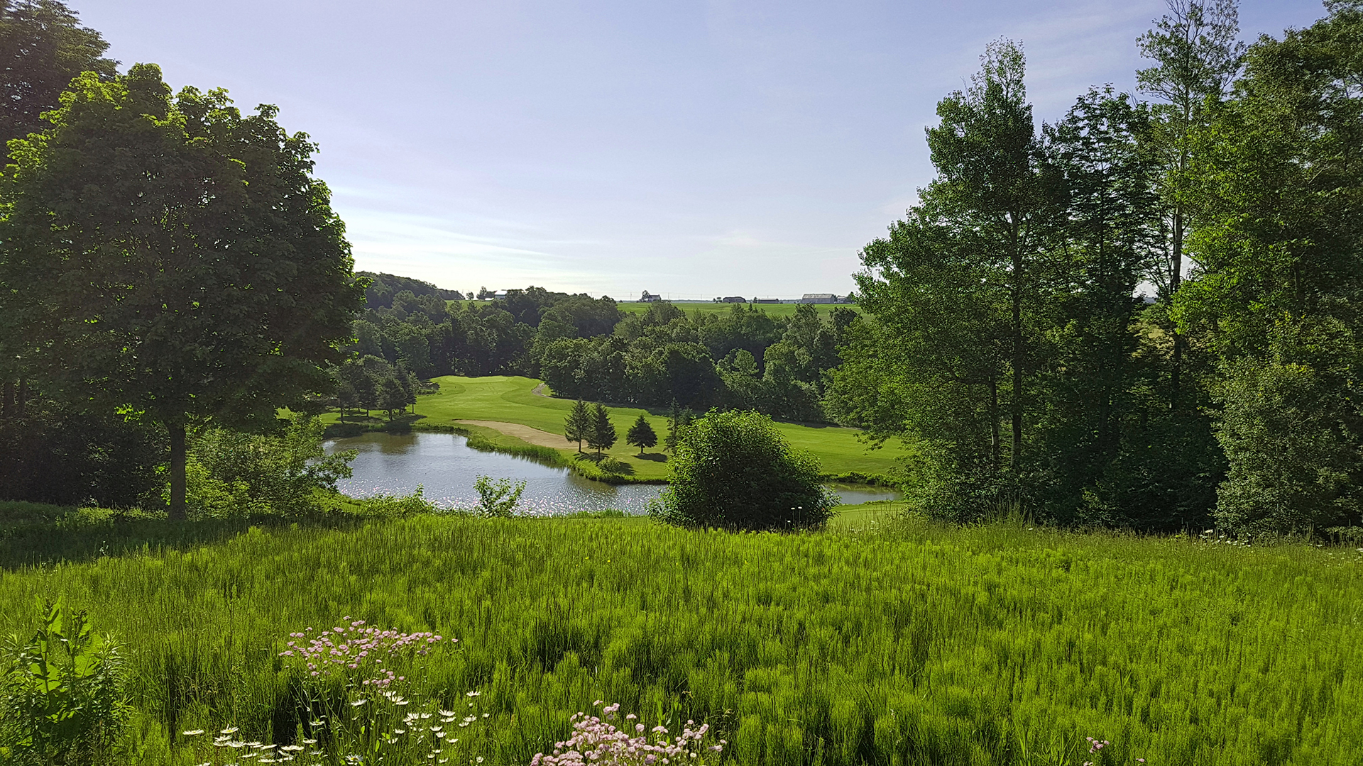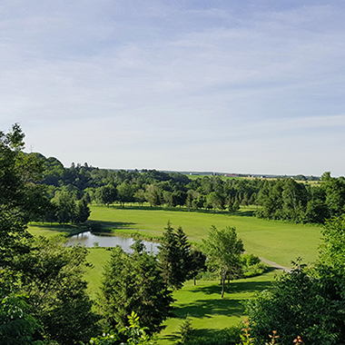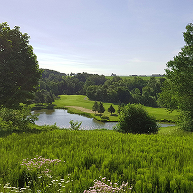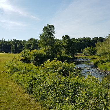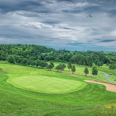 Cette normale 72 de 6462 verges a été dessiné par l'architecte Phil Watson. Il s'étend sur deux paliers et offre un panorama pittoresque. Ceinturés par la rivière Boyer, le design exploite au maximum la topographie environnante tout en préservant les précieux espaces boisés. Le terrain offre un défi de taille avec ses nombreux obstacles d'eau et ses trappes de sable.